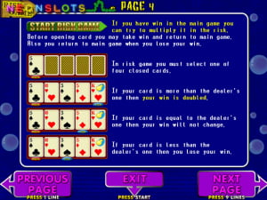 После того, как вы получили выигрышную комбинацию, вы можете выбрать игру или забрать свой выигрыш. Если вы решите сыграть в игру на умножение, нажмите кнопку ставки, и откроется новый экран с 5 закрытыми картами. Первая карта — это карта дилера, вы должны выбрать одну из четырех оставшихся карт, чтобы найти ту, которая выше по рангу. В случае успеха вы удвоите свой выигрыш и перейдете ко второму раунду, в случае неудачи вы потеряете свой выигрыш и вернетесь в основную игру. Вы можете забрать свой выигрыш в любое время, нажав на кнопку «Забрать выигрыш».