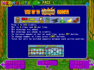 Выигрышная комбинация — это когда 3 или более одинаковых символов выпадают на соседних барабанах, начиная с крайнего левого или крайнего правого барабана вдоль одной из активных игровых линий этого слота, посвященного животным . Есть 7 символов, дикий символ и скаттер, который запускает бонусные игры, как указано выше. Множители для всех символов применяются к сумме ставки, и их можно найти в таблице выплат, где вы увидите, что логотип игры имеет самый высокий множитель x5000.