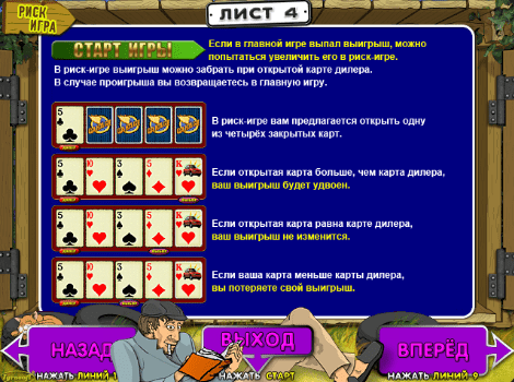 В видео-слотах в онлайн казино можно получить как выигрыш, так и риск игру, играя с дилером при выборе карты. Если вам повезет, сумма заработанная на последнем вращении барабанов может быть легко удвоена. Начните игру прямо сейчас бесплатно и без регистрации, чтобы получить максимальную выгоду.