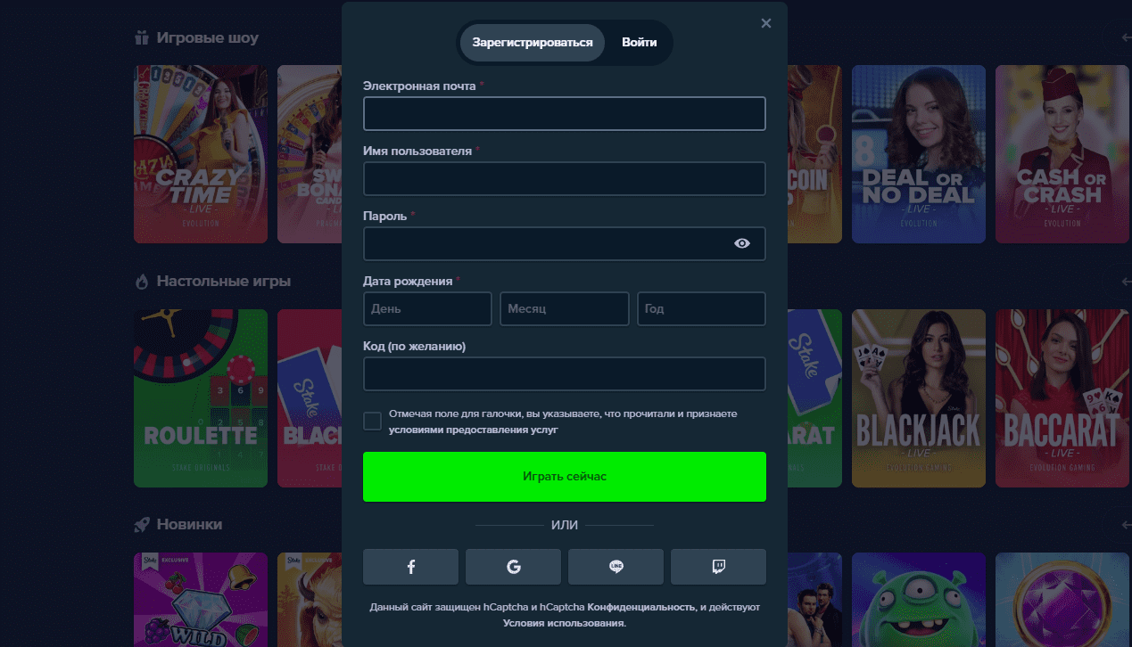 Как зарегистрироваться в Stake Casino/Процесс регистрации