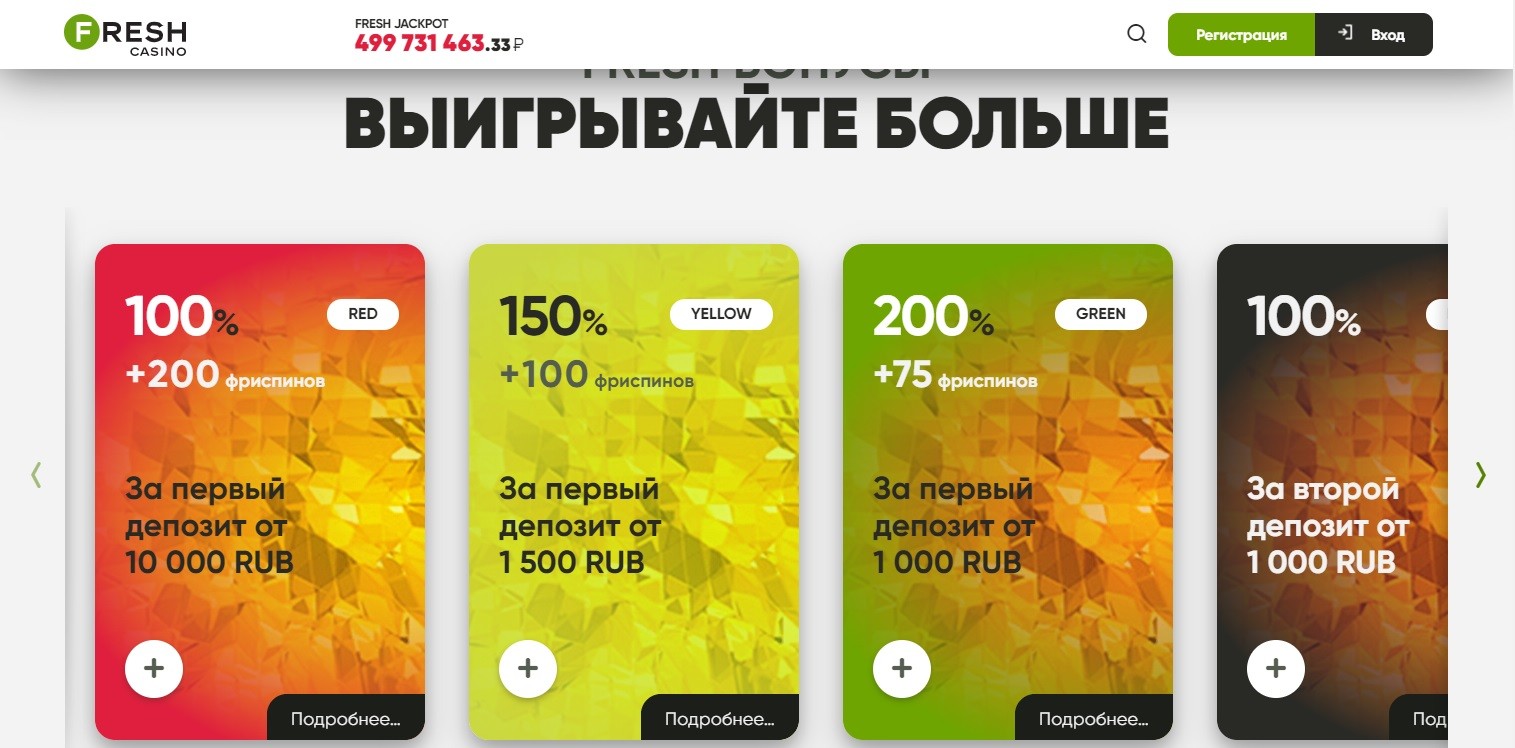 Бонусы и акции в Казино Fresh также приятно удивили. Щедрые приветственные предложения и регулярные бонусы делают игру еще более захватывающей и прибыльной.